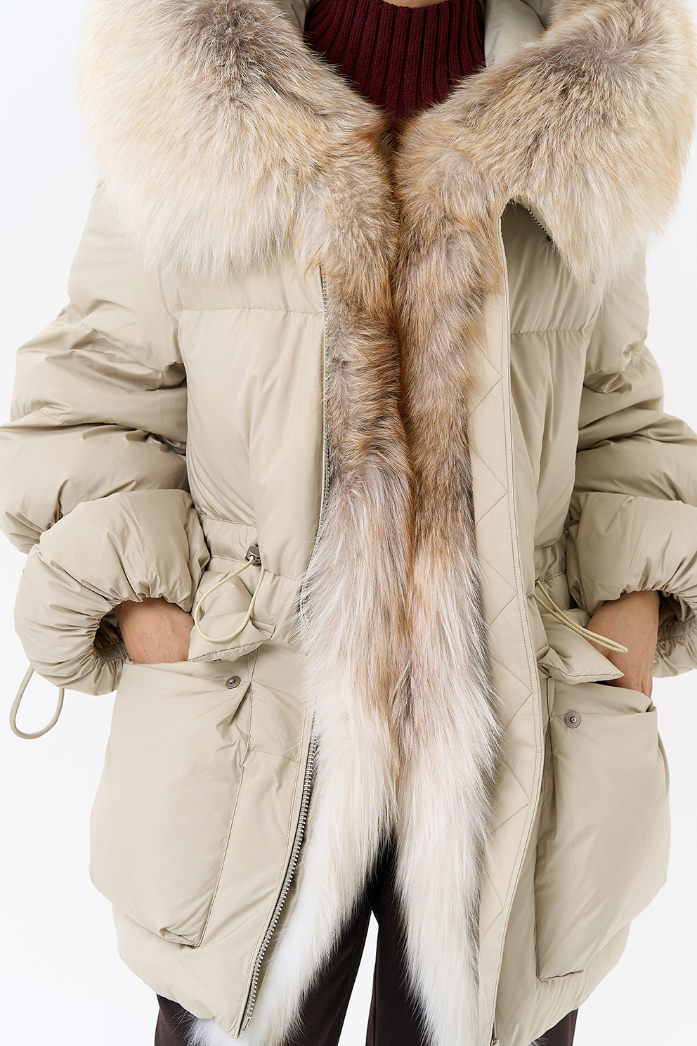 Крой воротника - капюшон, отделка лиса