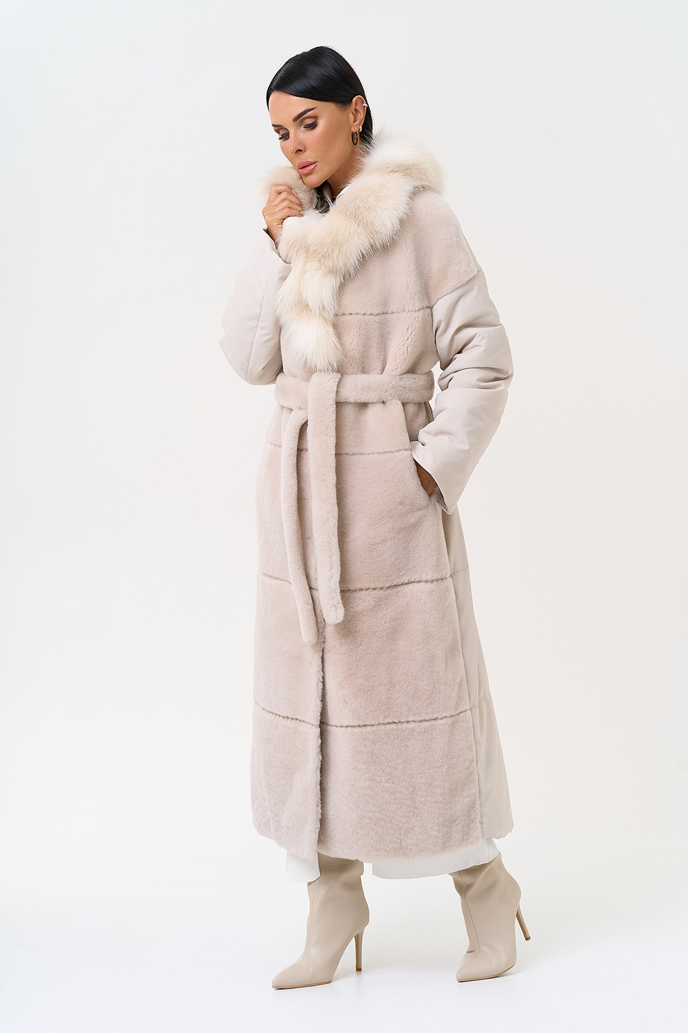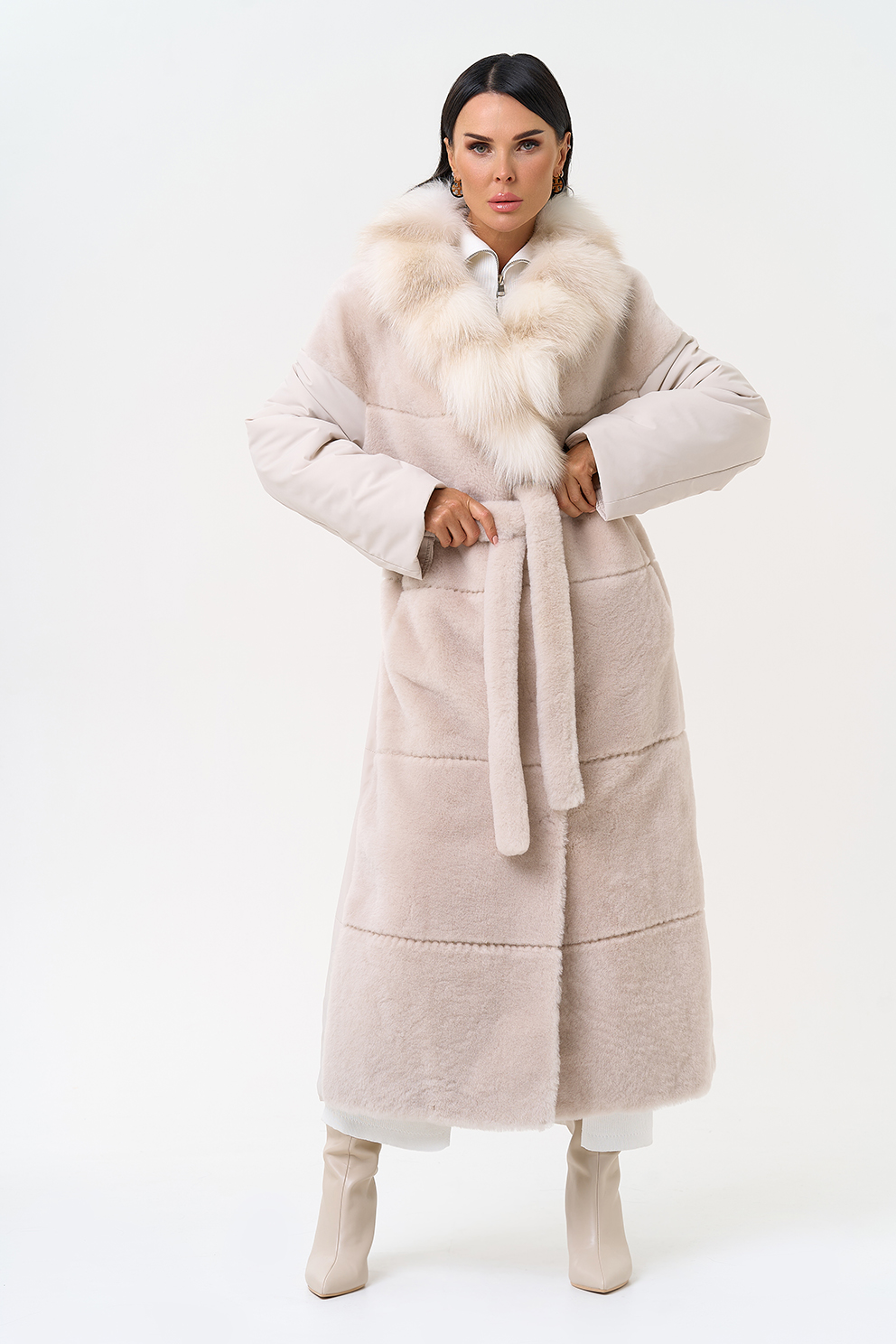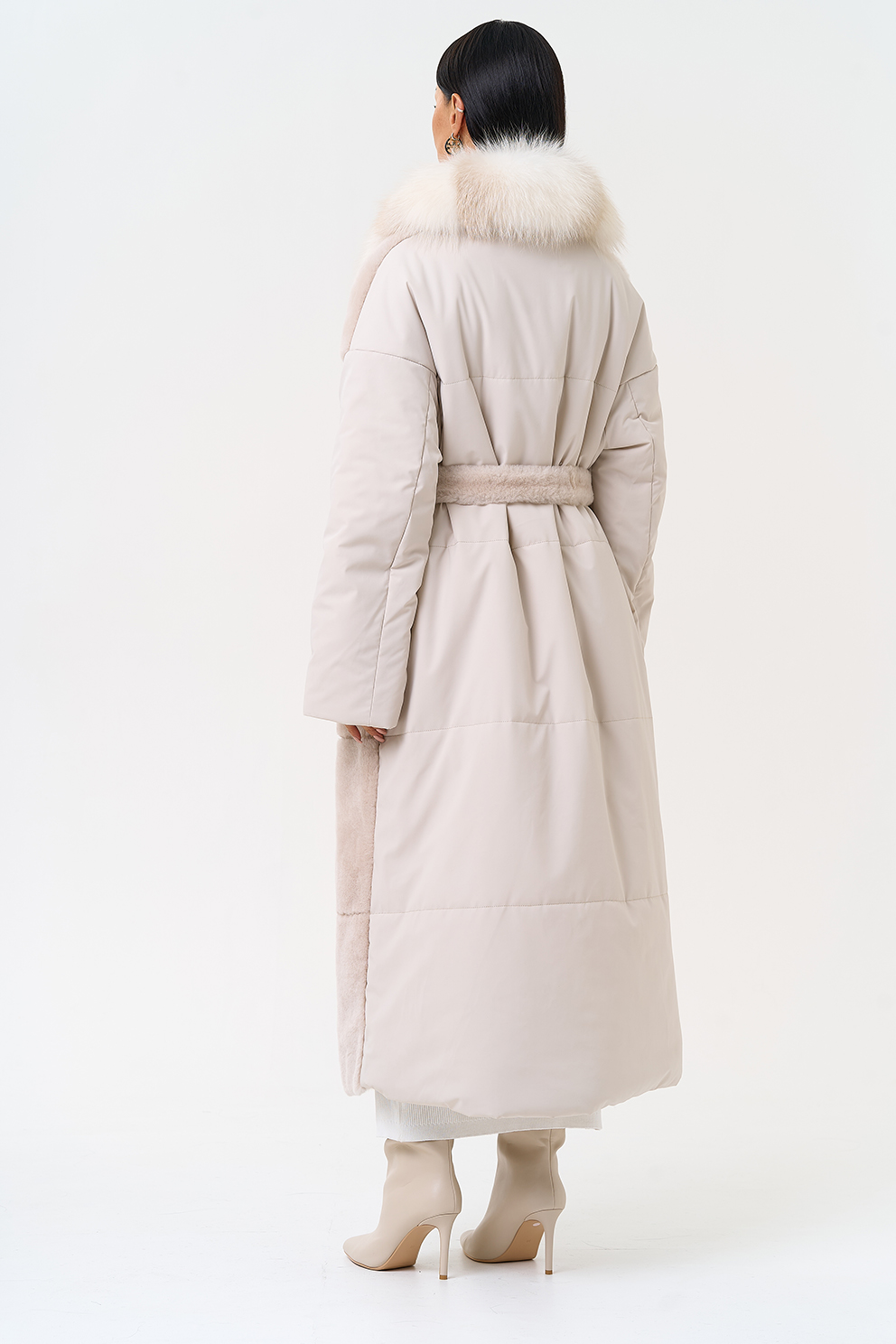 Вид застежки - кнопки, пояс из меха овчины